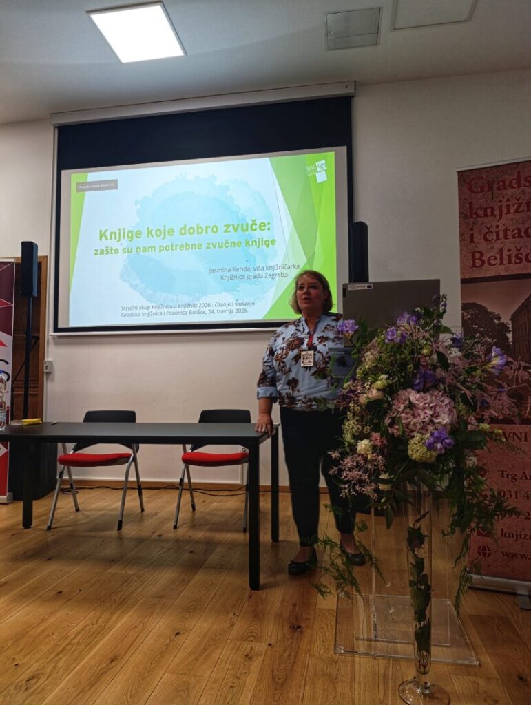 S druge strane, Jasmina Kenda iz Knjižnica grada Zagreba usmjerila je pozornost na zvučne knjige i njihovu sve vidljiviju ulogu u knjižničnom okruženju. U izlaganju „Knjige koje dobro zvuče: zašto su nam potrebne zvučne knjige“ istaknula je njihovu dostupnost, praktičnost i važnost u približavanju sadržaja različitim skupinama korisnika. Posebnu vrijednost njezina izlaganja činile su vrlo konkretne smjernice za rad: od preporuka naslova za rad s mladima, preko stručne literature za daljnje usavršavanje, do pregleda načina na koje su zvučne knjige dostupne u katalozima i digitalnim aplikacijama, zajedno s primjerima njihove zvučne interpretacije.