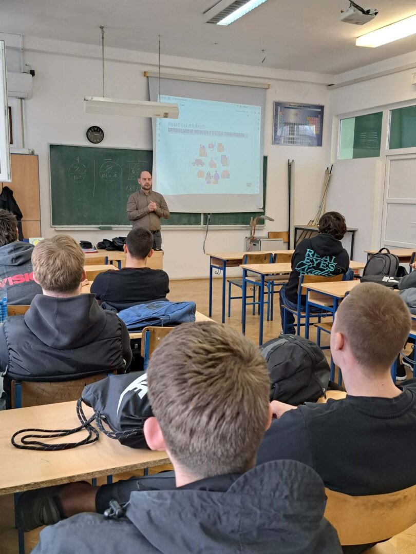 Maturantima 4.TE razreda r.F.Jukića, uskoro tehničarima za energetiku, održano je i zanimljivo predavanje o upravljanju novcem te ulozi osiguravajućih društava. Gost predavač bio je Dragan Stakić, voditelj prodaje u GRAWE Hrvatska d.d., koji je učenicima približio važnost odgovornog upravljanja osobnim financijama i donošenja financijskih odluka.