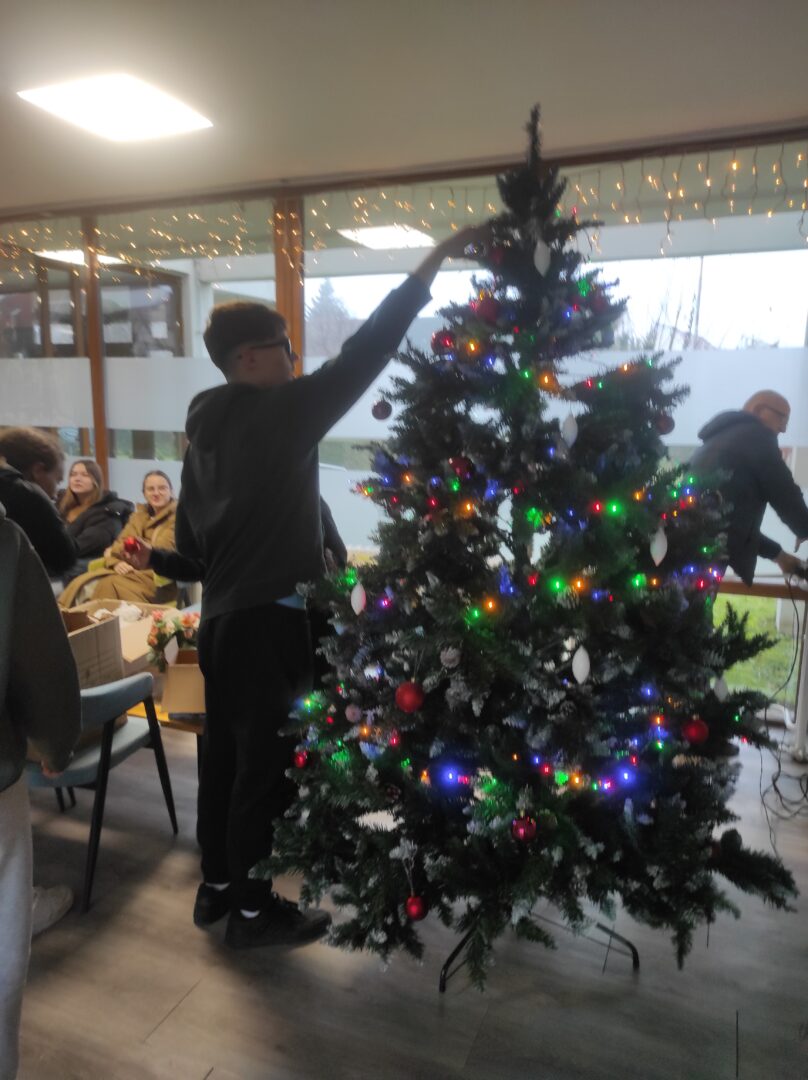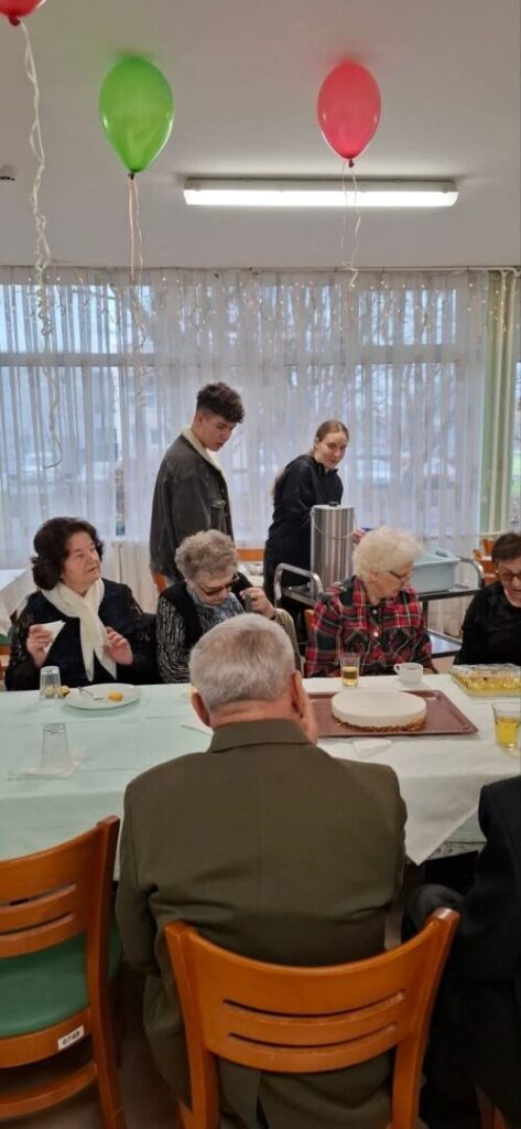 U srijedu, 17.12.2025., u organizaciji i pratnji troje nastavnika vjeronauka Magdalene, Ljubomira i Lucije, učenici naše škole sudjelovali su u uređenju Doma za starije i nemoćne Osijek u blagdanskom duhu. Tom su prigodom kroz božićne ukrase i ornamente na kreativan način ponovili imena važnijih biblijskih osoba Staroga i Novoga zavjeta. Nakon ukrašavanja Doma, nastavnici i učenici pomogli su u realizaciji proslave rođendana njihovih korisnika. Na kraju smo im poklonili prigodan dar kako bismo uz žarulje na borovima unijeli svjetlost i kroz naslov knjige i čitanje.