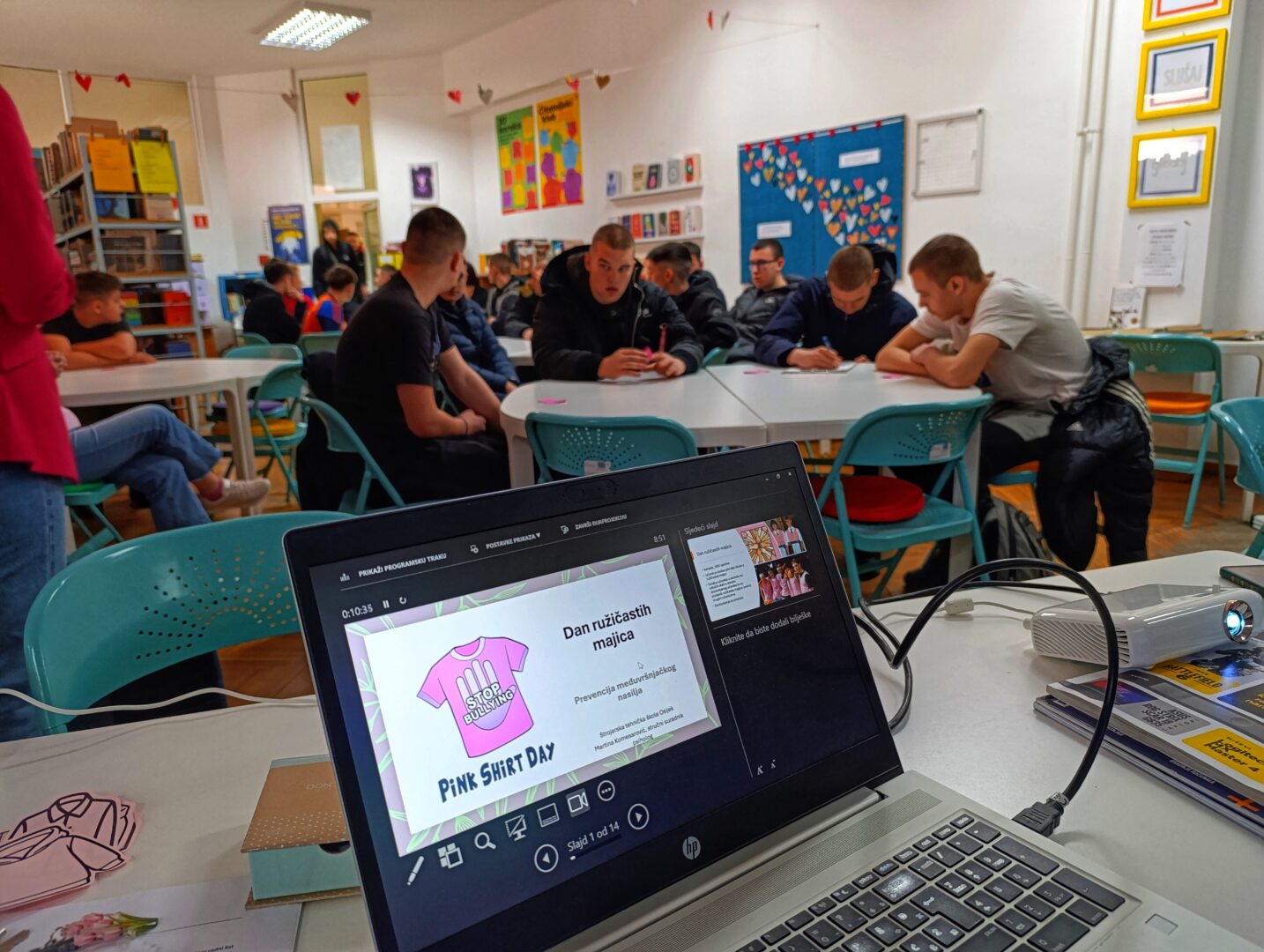 Za učenike prvih, drugih i trećih razreda bila je organizirana radionica u knjižnici koju je vodila školska psihologinja Martina Komesarović. Učenici su mogli čuti više o tome što je to nasilje, vrste nasilja, kako prepoznati znakove nasilja i što učiniti ako doživljavamo mi ili netko nama blizak nasilje.
